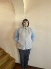 Жилет хороший. Выглядит прилично с обеих сторон. Можно носить в прохладную погоду на свитер. Размер в размер.
